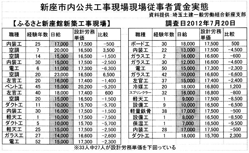 Q.市発注の公共工事現場で下請け労働者の賃金は8割が労務単価を下回っている。元請けとして改善すべきだ。