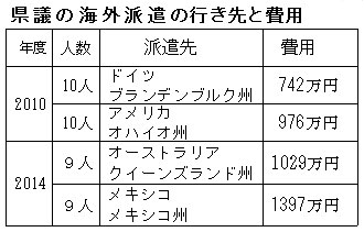 埼玉県議会では、2010年度から姉妹都市の親善事業として県議の海外派遣が計画されました。日本共産党は2011年は原発事故後お茶農家の危機的な被災状況から中国山西省への海外派遣を中止させました。 2014年度はオーストラリアやメキシコに18人派遣。共産党は「深刻な豪雪被害や消費税増税で県民のくらしは厳しく議長だけが参加すれば済む」と主張しましたが、自民党県議らは2427万円で海外視察を強行しました。