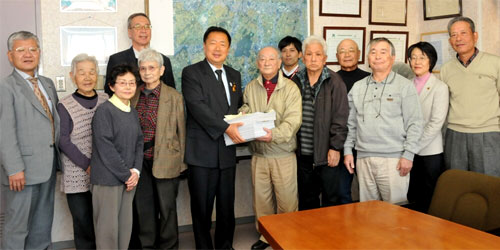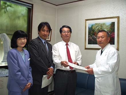 | 桜井はる子氏と朝賀、工藤市議は朝霞地区医師会長の橋本啓一医師を訪ねて懇談しました。共産党の『後期高齢者医療制度は廃止を』のパンフを手渡しました。 |