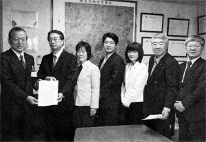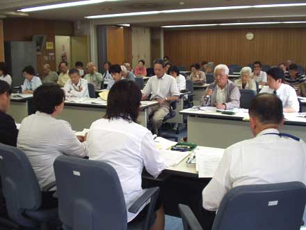 | 埼玉県社会保険推進協議会の自治体要請キャラバンが新座市の福祉関係課長と懇談をおこないました。国民の怒りが高まっている後期高齢者医療制度について質問や意見が集中しました。 |