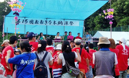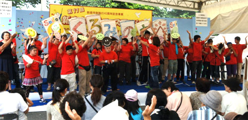 | 青空の下、福祉の里で第15回福祉フェスティバルが開催されました。障害者団体や老人クラブ、保育園やボランティア団体等82団体が発表や展示を通して交流、理解を深める場となりました。 |