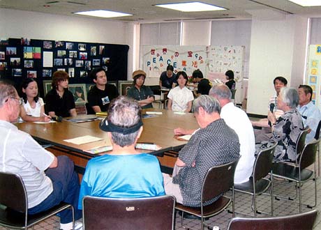 | イラクの子どもたちに歌やサーカスを運ぶ『ぼくらの夢の音楽隊』の青年たちと、今と昔の ”戦さ”について語り合いました。 |