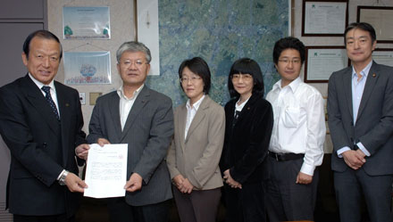 | 市長が3月議会に9億円もの料金値上げと福祉サービスカットを提案する・・・市の動きをキャッチした日本共産党は、市民に「増税やめよ」の署名に取り組み、8413筆をまず提出。財政難の原因は、三位一体改革による減収と、合併騒ぎでの市財政のゆるみ。市民にしわ寄せは許せません。 |