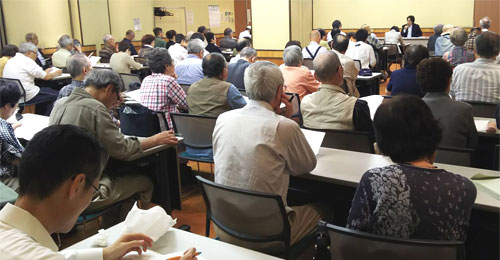 | 戦後70年、市制施行45周年・平和記念事業が行なわれ、戦争体験講話で金子富子さんは、敗戦の色濃くなったミンダナオ島で、ジャングルを一年間逃げ廻った体験を語ってくれました。 |