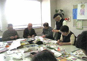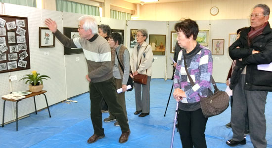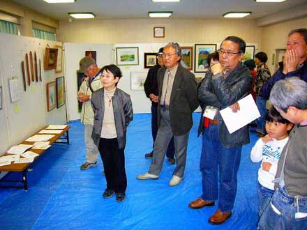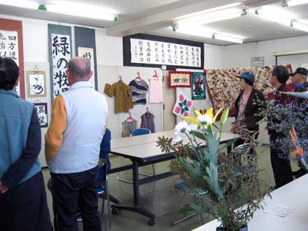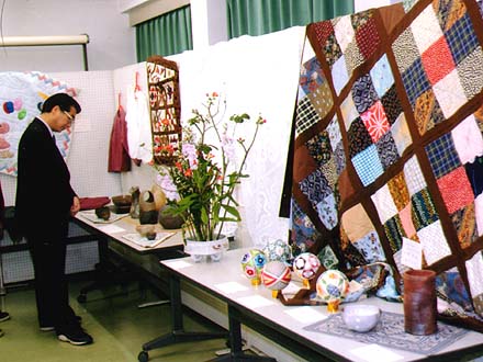 書道、写真、手芸、パッチワーク、陶芸・・・共産党・栄池田後援会の”手づくり文化祭”にはみごとな作品が並びます。 |