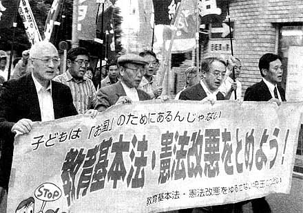 | 北浦和公園で「教育基本法・憲法改悪を許さない県民集会」が開かれ約千人の市民、教職員などが参加。JR浦和駅までパレードしました。新座市からも多数の教職員、市民とともに笠原市議も参加しました。 |
