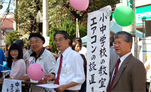 | 猛暑で教室は平均気温が35度以上にもなかったことから、共産党新座市委員会は「エアコン設置」署名を全戸配布し、商工祭りや駅頭などでも署名に取り組み、大きな反響がありました。 |