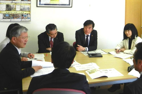 | 「放射能汚染対策などにかかる要望書」を市長と教育長に提出。小中学校、保育園、幼稚園、学童保育所、児童施設などの放射能汚染の詳細調査と結果の公表などを要望しました。 |